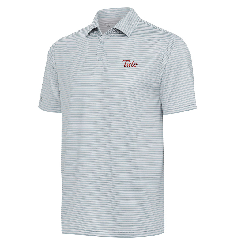 Master your style game with the Alabama Tide Script Skills Polo. Available in bold crimson and sharp gray stripe options, this polo brings a dynamic blend of performance and Crimson Tide pride. Featuring the signature “Tide” script on the chest, it’s designed for fans who value comfort, mobility, and a polished look that transitions seamlessly from the course to the quad.