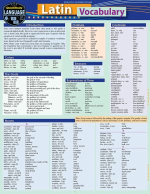 Latin is the key that opens the door to many other languages and this guide covers roughly 1300 words found in the most frequently read Latin literature. This 6 page laminated reference guide is designed for quick access, easy review and focus by organizing words alphabetically for translation, and also by part of speech if the guide is needed for composition. Reviewing this guide often - will boost grades. An inexpensive tool that can go anywhere and help to retrain the brain to tackle many other languages is a must have.