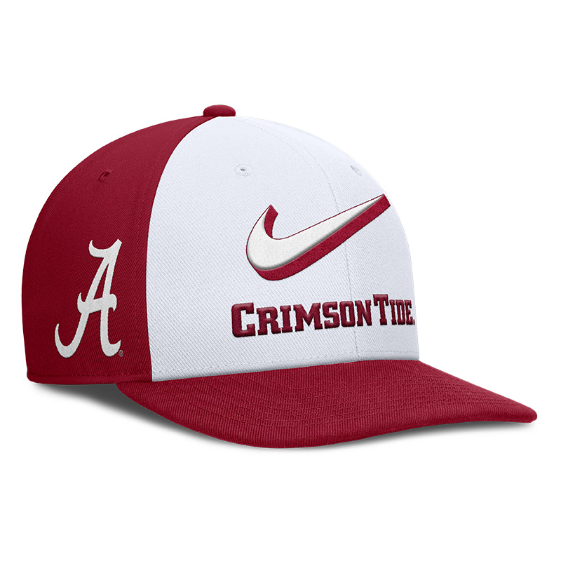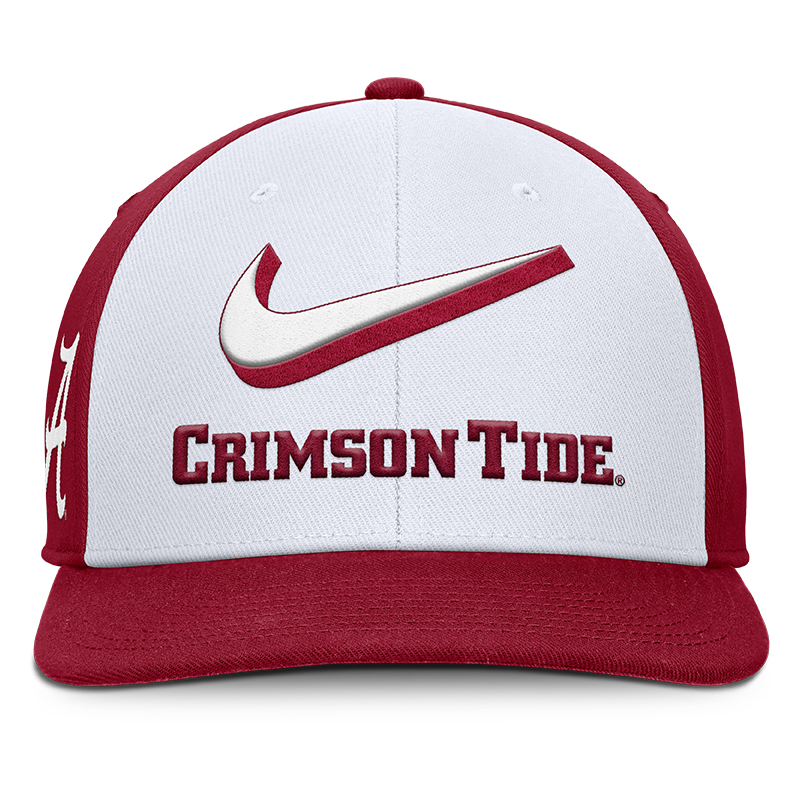 Stand out with bold Crimson Tide pride in the Alabama Nike Dri-FIT Pro Primetime Snapback Cap. Featuring the oversized Nike Swoosh and "Crimson Tide" embroidery across the front, this structured snapback delivers the perfect mix of modern athletic style and classic Alabama tradition. The side Script A adds an extra touch of Bama spirit, while the adjustable snapback closure ensures the perfect fit.